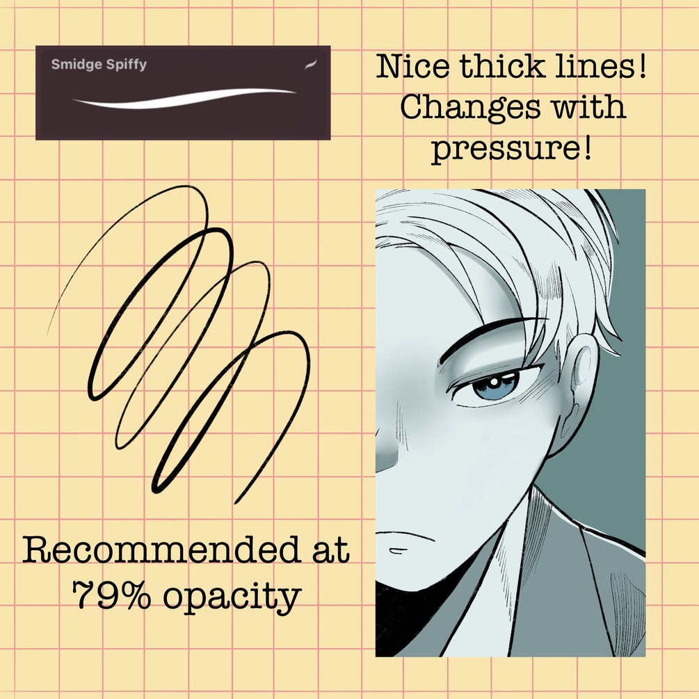 - Smidge SpiffyA smooth, gritty lineart brush. Great for dynamic lineart!